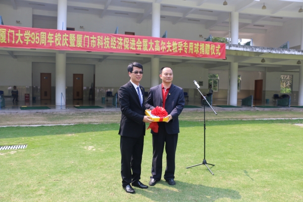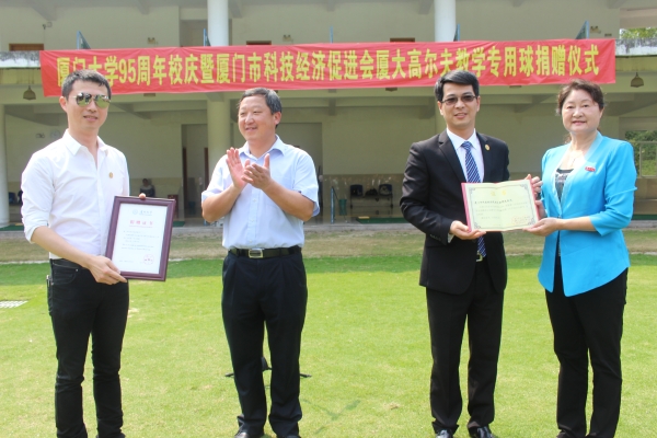 4月7日上午,在我校95周年校庆之际,厦门市科技经济促进会(以下简称“科促会”)高尔夫教学专用球捐赠仪式在厦门大学高尔夫练习场举行。涂锦波先生代表科促会捐赠,后勤集团副总经理刘君彬代表学校表示感谢并接受捐赠。
