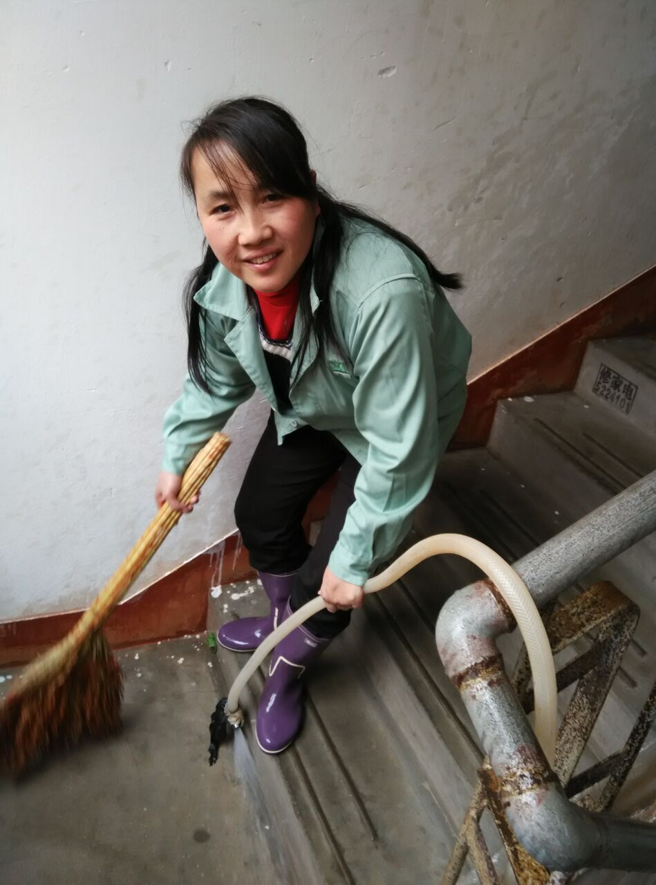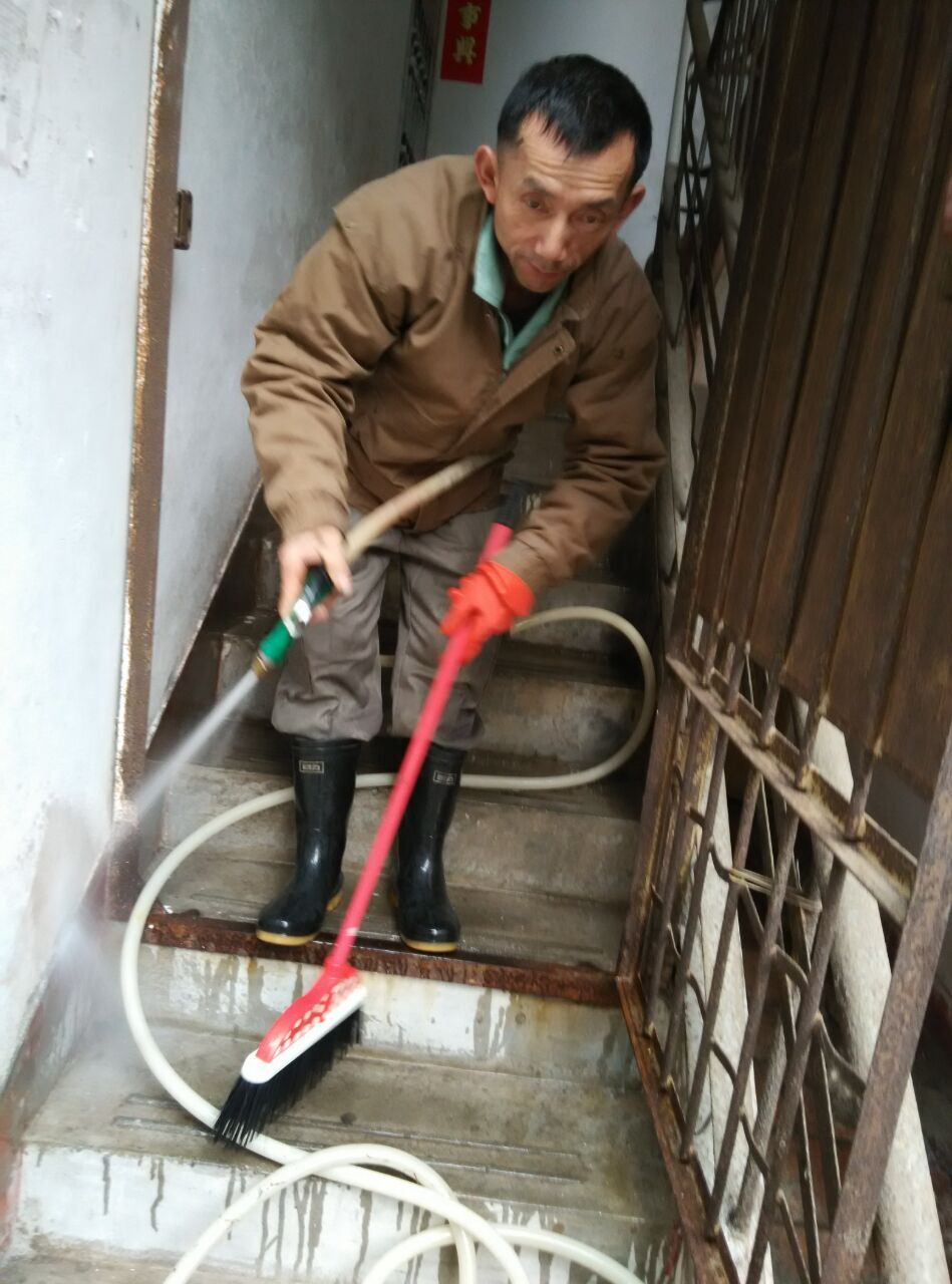 图组一:保洁人员组“喜刷刷”,按照国民习俗去污除旧,辞旧迎新。