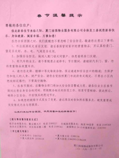 图三:管理员组温馨“提提醒”,共创平安家园,欢度温馨和乐新春佳节!