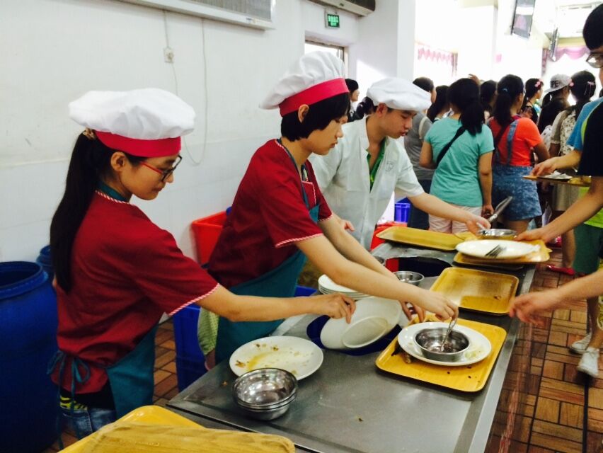 天天小队来到了凌云餐厅。早上五点刚过,队员们就来到食堂集合。习惯了站在橱窗外面的队员此番转为工作人员,刚开始感到异常新鲜,接着就感受到来自工作的艰辛。别看平时打饭的师傅们如流水般不费力,真正上手后才知道这真是一个考验臂力的工作。收拾碗筷这边,似乎无论以怎样的速度整理,面前的碗筷总是只增不减,一不留神便摆成了小山。除了这些,同学们还参与准备食材,整理快餐盒等。这些平时看似简单的工作却不容易做好,尤其是用餐高峰期更容易手忙脚乱。两天下来,虽然累得全身酸痛,但却体验到了劳动的艰辛与快乐,内心里也多了一份感恩。