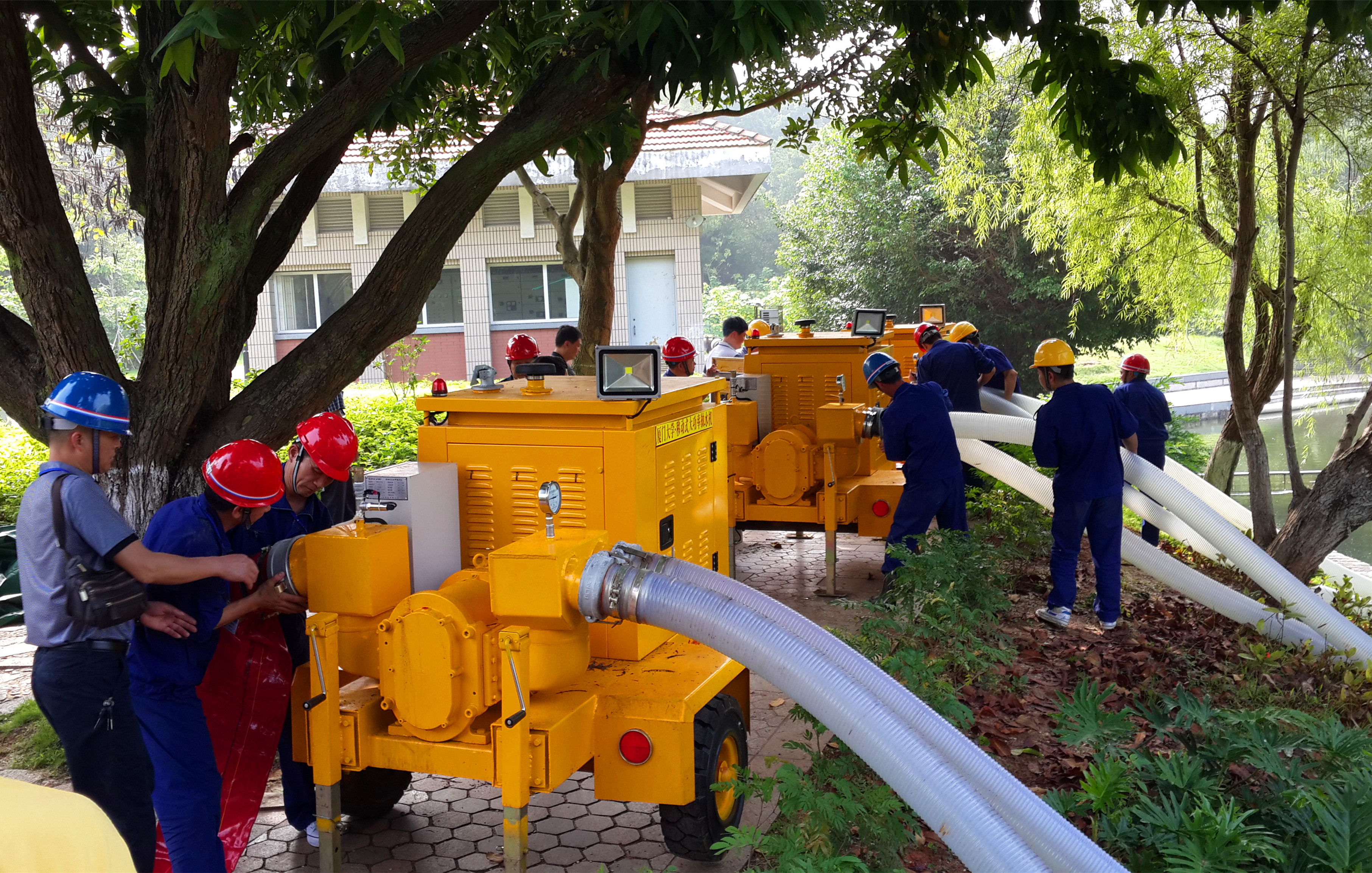 在芙蓉湖畔,资产与后勤事务管理处水电科、后勤集团水电服务中心组织抢险救灾队伍对学校新购置的3台移动式大功率抽水机进行实战演练。演练前,抢险人员认真参加厂家组织的培训,学习管件连接、蓄电池充电、机器启动、系统故障排查等知识。演练时,在指挥员的指挥下,抢险人员迅速将抽水机固定、接管,并检查接通线路。随着一声令下,抽水机顺利启动,抽出大量湖水,集中显示出吸程深、排量大、扬程远的优点。