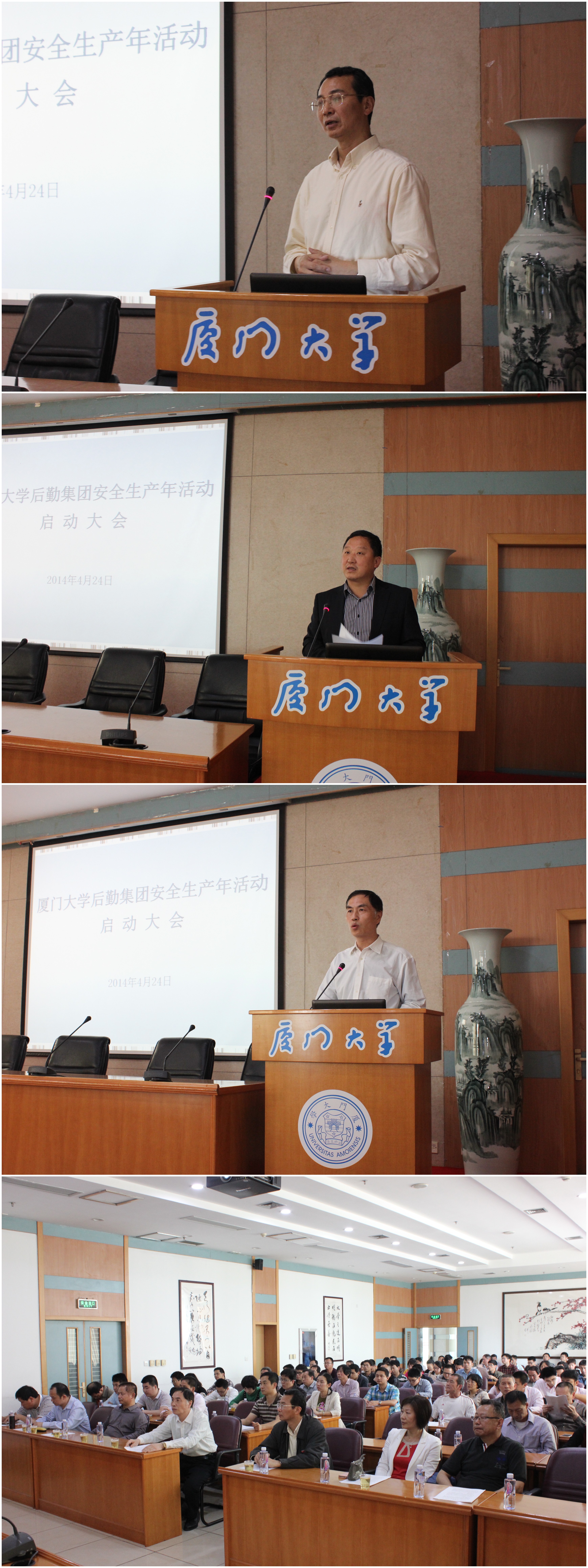 集团党委书记叶鹏飞结合各单位工作实际和鲜活案例,详细讲解了《关于开展厦门大学后勤集团“安全生产年”活动工作方案》。“安全生产年”活动,以“强基础,抓规范,提水平,促发展”为活动主题,以集团内的政治、财产、人员、生产等各项工作为对象,从管理、经营、服务等环节入手,进一步深化安全隐患排查治理工作,切实解决集团卫生安全稳定工作存在的薄弱环节和突出问题;进一步提升安全发展理念,有效保障安全投入,在各单位、各车间、各班组全面深入开展安全教育,牢固树立安全意识和安全发展理念;明确职责,切实落实安全生产主体责任和监督检查责任,完善卫生安全稳定的责任体系,加强制度建设,用制度保障安全工作,推进管理创新,提升安防能力水平,提升卫生安全稳定的工作能力和水平,遏制事故的发生,努力实现本年度集团卫生安全稳定工作零事故和零损失,确保集团安全、健康、有序、持续发展。