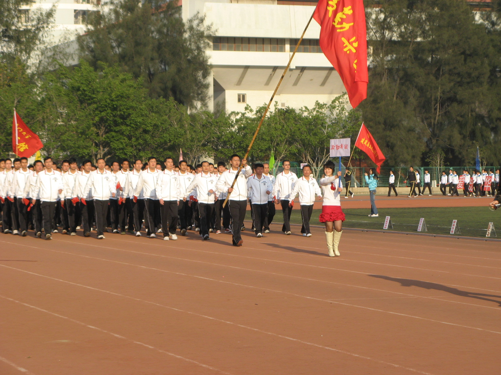 开幕式上,当后勤集团的方队迈着矫健整齐的步伐走过主席台时,成群放飞的和平鸽,表达了后勤人对学校事业蒸蒸日上的美好祝福;嘹亮的口号——“锻炼身体、增强体质、加强服务、提高质量”道出了后勤人服务师生、踏实工作、努力奉献、勇于进取的豪情!