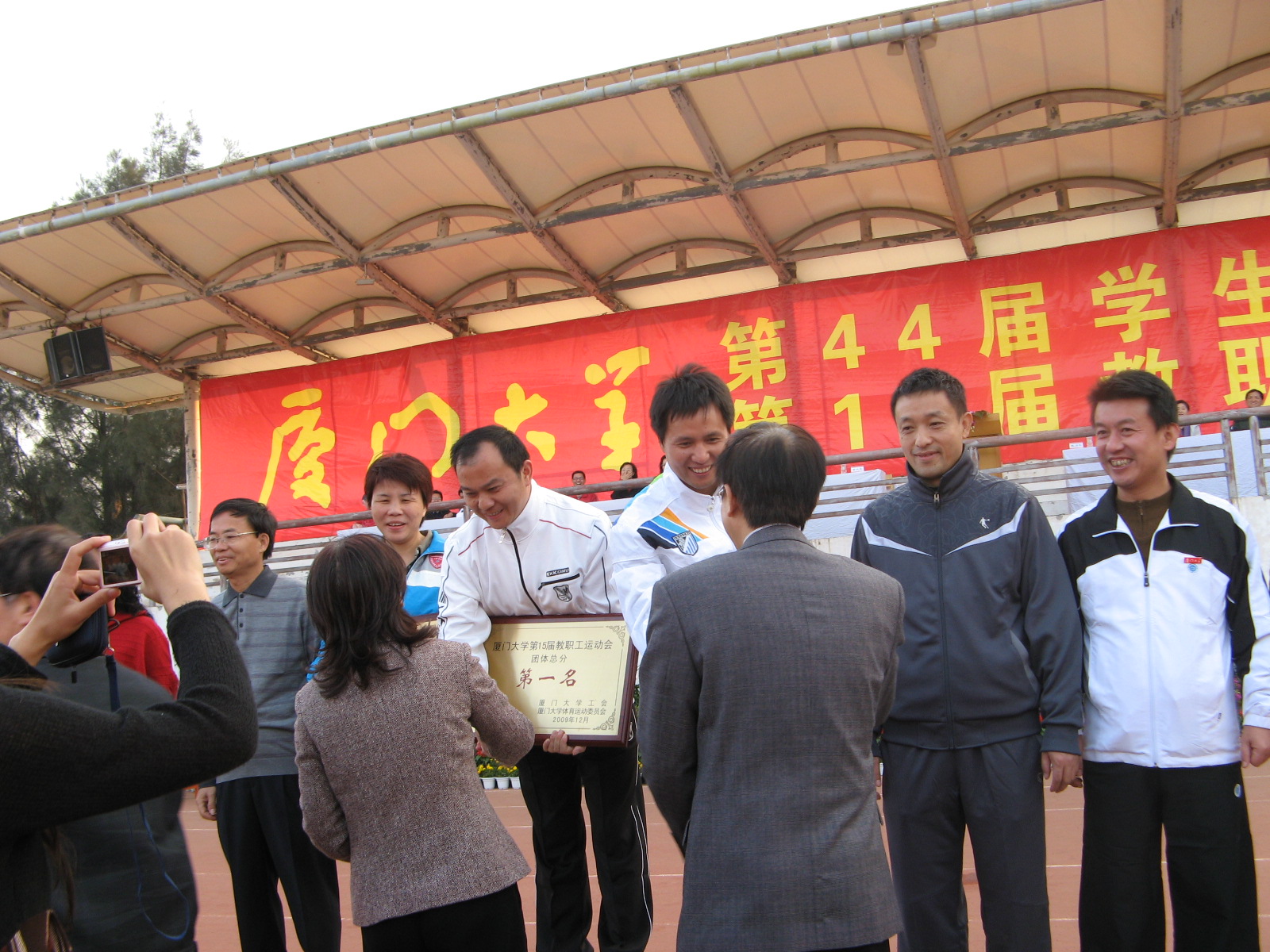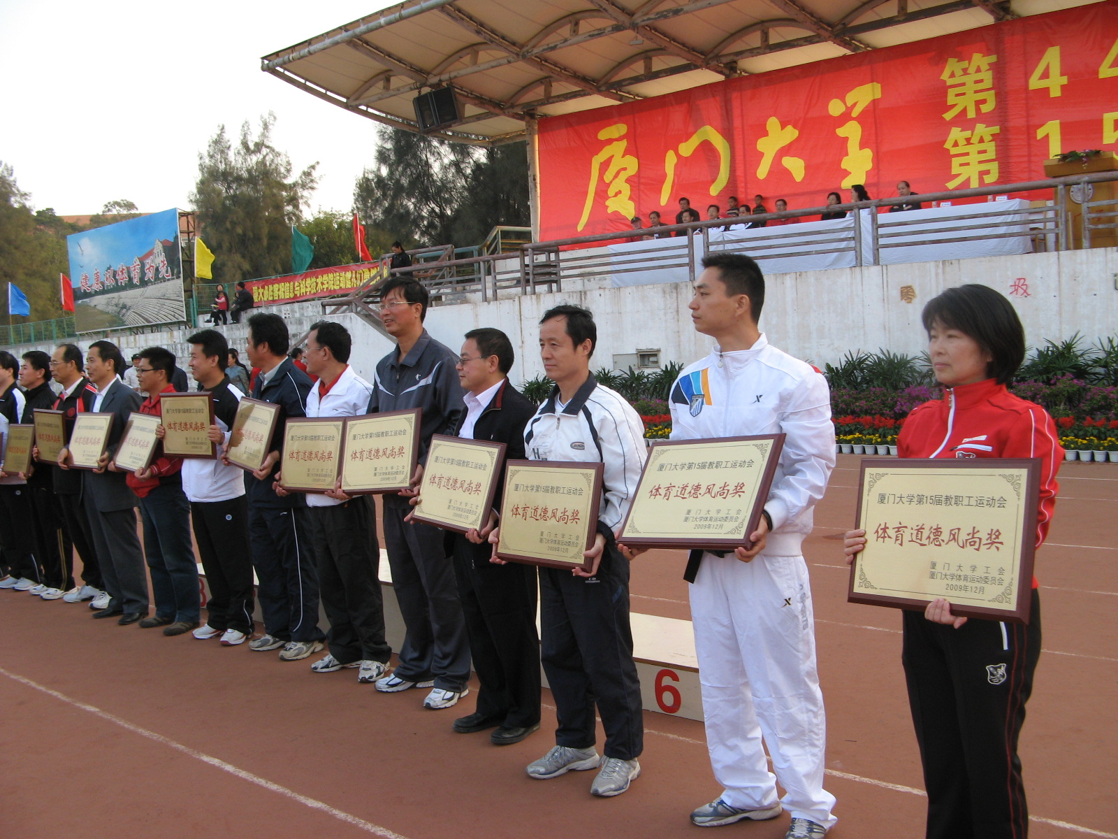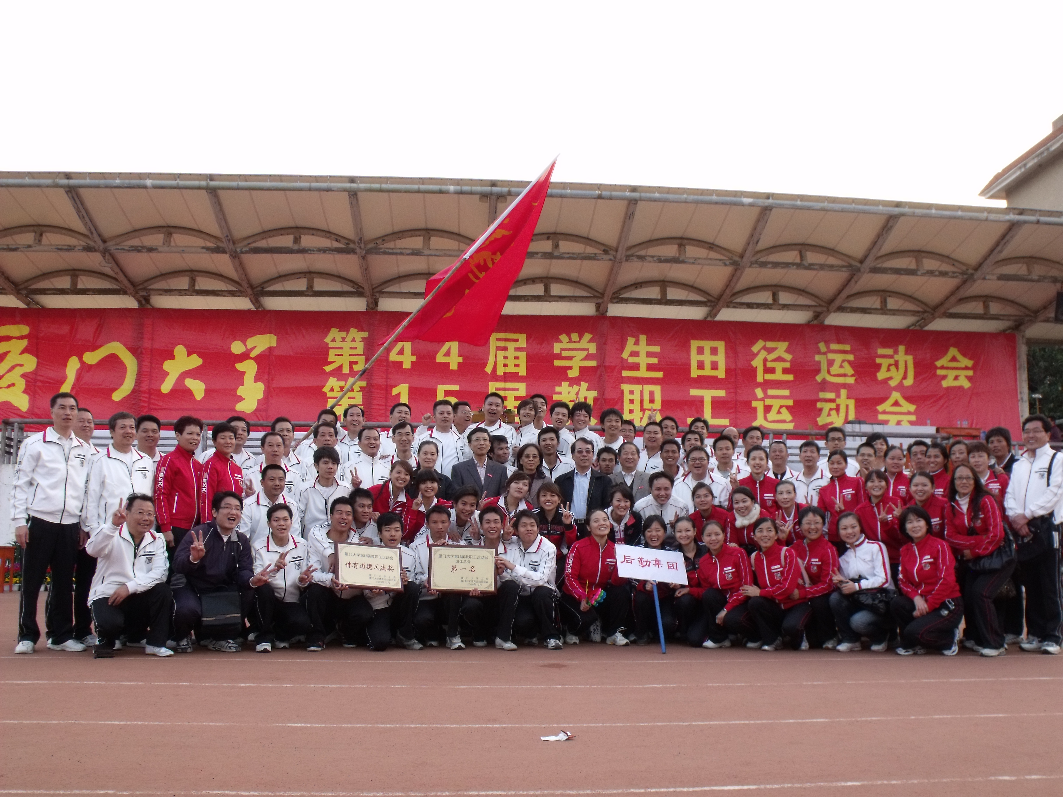 在12月5日召开的厦门大学第15届教职工运动会上,后勤集团的运动健儿奋勇拼搏,以总分298分的成绩荣获本届运动会团体总分第一名和体育道德风尚奖第一名的双丰收。