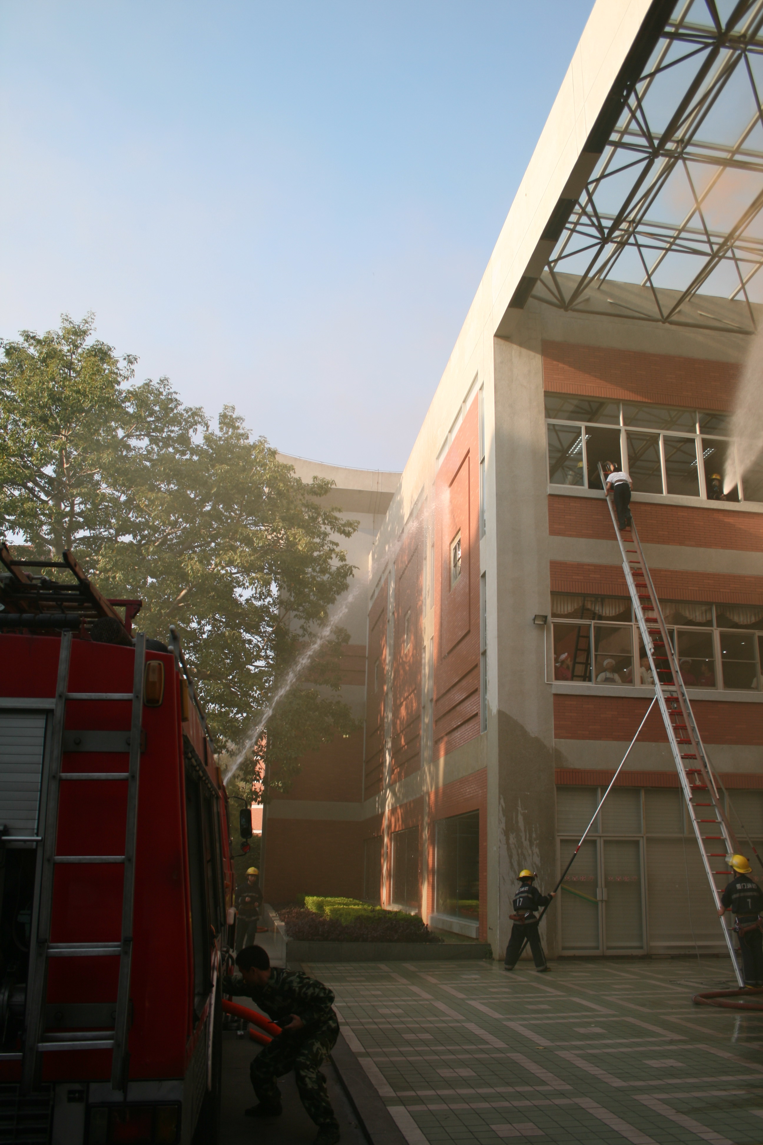 15时40分,逃生演练正式开始,芙蓉餐厅被烟雾弹发出的浓浓烟雾所笼罩,参加演练的200多名集团员工按照演练的规范要求,从三楼小吃城捂住鼻子,弯着腰,紧张有序地从“火场逃生”;楼下,消防官兵紧急铺设消防水管,在消防车隆隆作响的加压下,两道苍劲有力的“水龙”扑向“火海”;此时,消防员发现芙蓉餐厅三楼内有部分“被困”员工,于是紧急架起云梯,爬上三楼窗户,将“被困”员工安全“救出”……演练活动结束后,黄指导员还就本次演练的情况为大家做了具体点评。