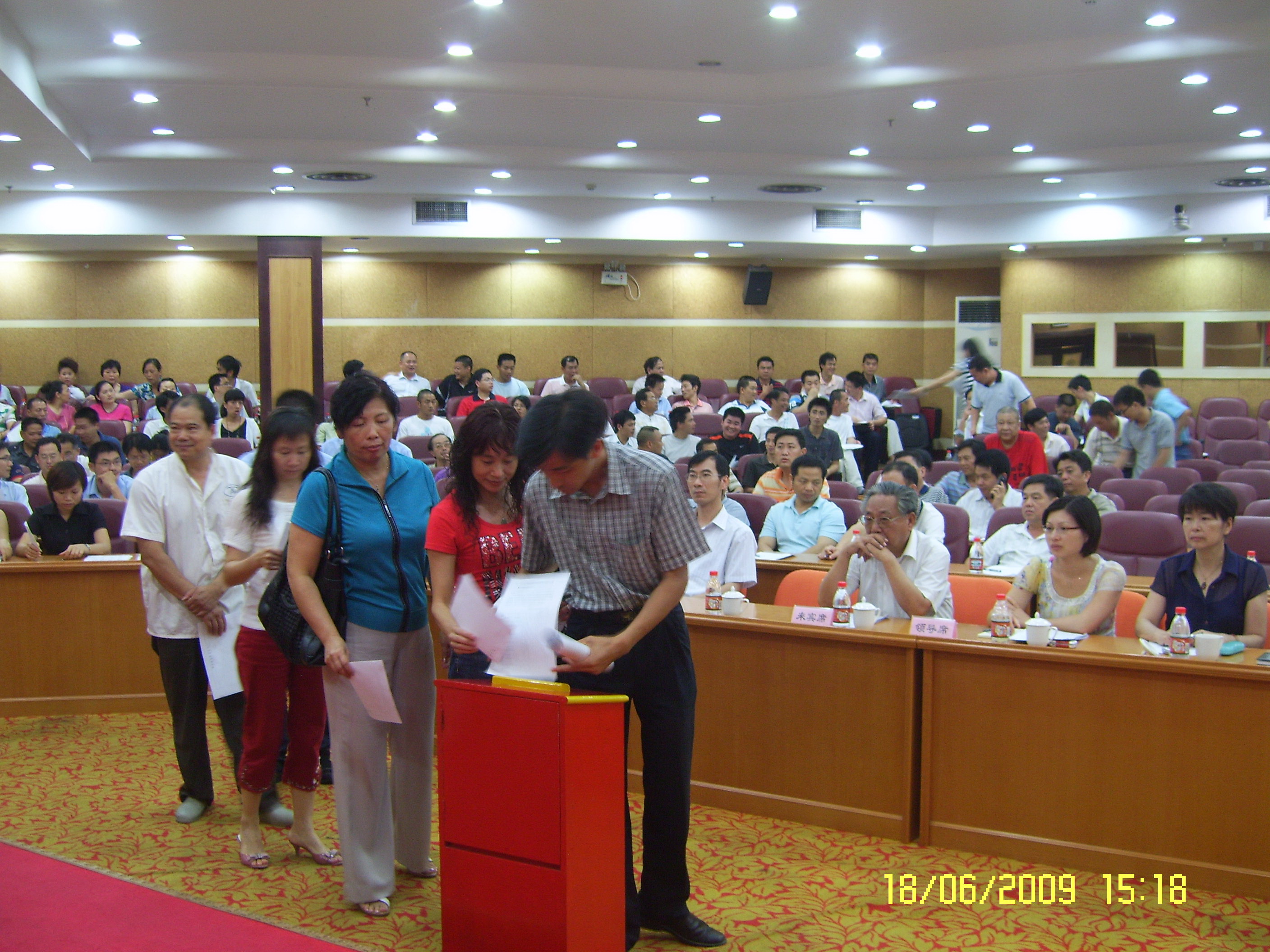 6月18日下午3:00,后勤集团领导班子贯彻落实科学发展观情况分析检查报告群众评议会在克立楼报告厅举行。集团领导班子全体成员、党总支委员、各单位负责人、各支部书记、二级以上管理人员、校党代会代表、校教代会代表、集团职代会代表、党员代表、学校编制员工代表和民主党派人士230多人参加了会议,校学习实践活动第二检查组组长郑保东和联络员王智兰莅会指导。会议由后勤集团总经理、集团学习实践活动领导小组组长谢银辉主持。
