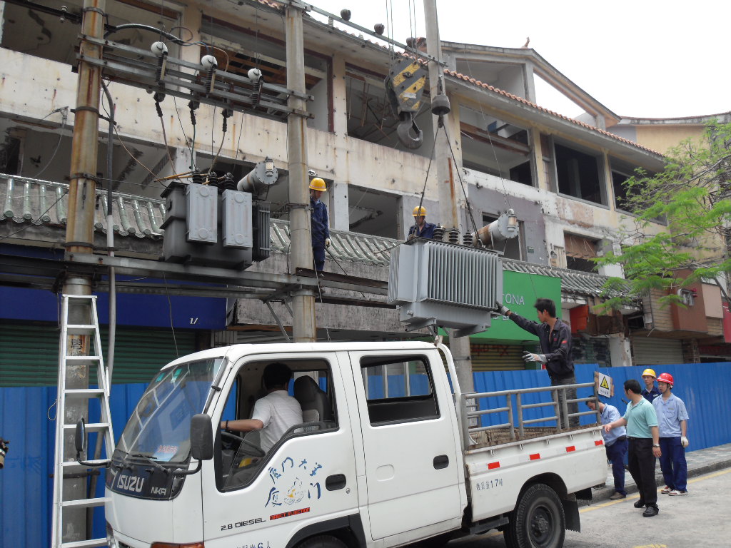 5月12日上午8点30分,水电服务中心的领导及工程部、维修部、运行部的工作人员齐聚厦大一条街,按照学校职能部门的工作安排,开始拆除一条街的杆上变压器,进行校内负荷调整。