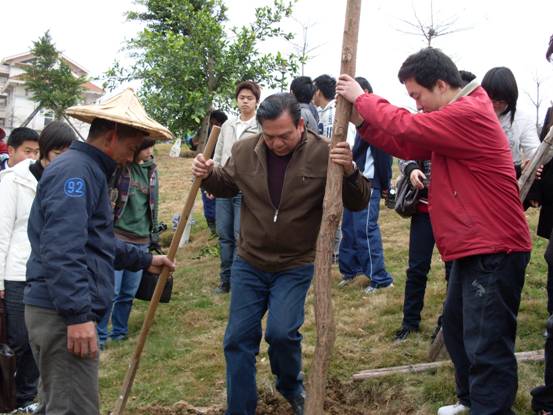 这次植树活动,我部在湖心岛种植桃树、李树各150株,行道树及其它各种苗木、灌木1135株,并协同嘉庚学院师生分别在栖霞湖护坡、公教B号楼、虎头水库栽下43棵柳树。