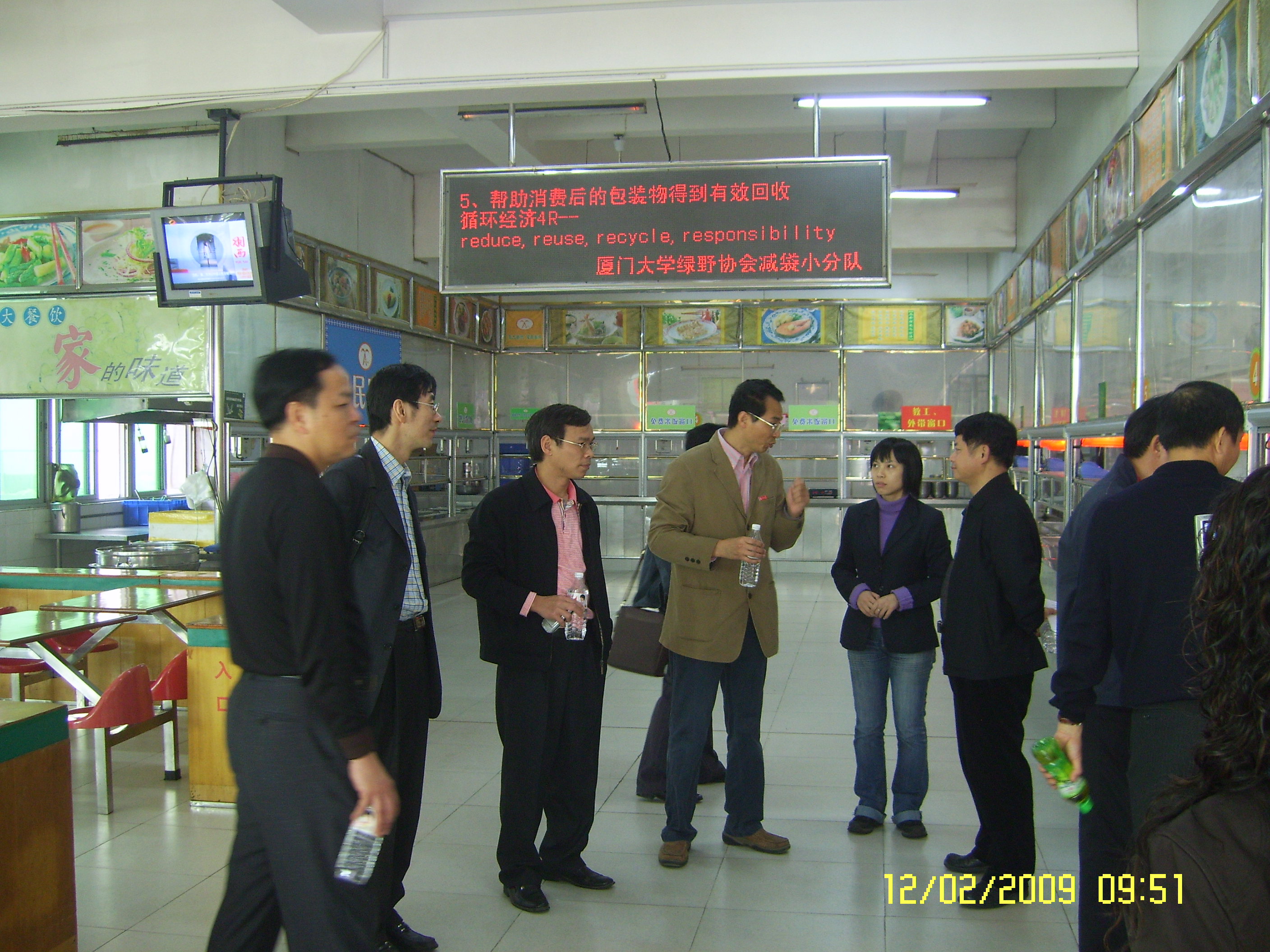 2009年2月12日是节后第一个工作日,上午8:30,校党委常委、副校长赖虹凯在资产与后勤事务管理处处长陈光、后勤集团总经理谢银辉、后勤集团党总支书记叶鹏飞的陪同下,带领资产与后勤事务管理处与后勤集团领导班子及相关人员,深入全校各后勤一线检查开学初各项后勤工作准备情况。