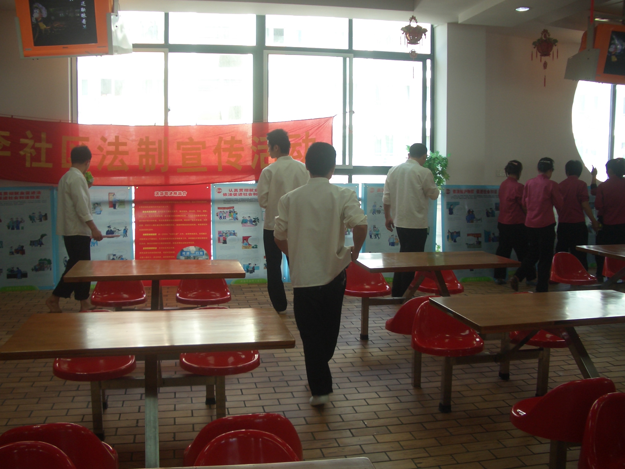 为了加强员工的法治教育,增强员工的法治意识,饮食服务中心海韵公寓第二餐厅与滨海街道上李社区合作,于二月二十四日中午邀请滨海司法所王燕玲老师前来我们餐厅为员工讲授法制知识,主要内容是新《劳动合同法》。活动的形式有讲解和观看DVD,王老师先给广大员工讲解了合同法的一些基本知识,特别是合同法中有关维护员工权益的部分做了比较详细的说明,接着播放宣传片,宣传片是用动画的形式,寓教于乐,员工们都看得聚精会神、津津有味。看完短片后,还让员工们浏览宣传展板,既生动又有趣。整个活动收到了很好的效果,员工们都表示这样的活动可以继续举行。