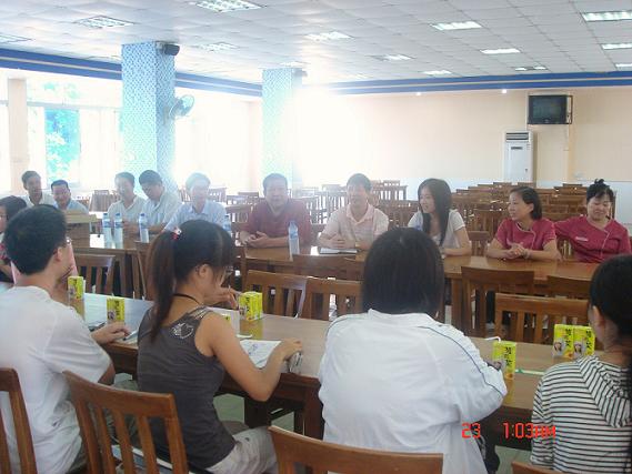 2008年10月22日13:00,东苑餐厅膳委会在餐厅三楼举行。出席会议的有后勤集团饮食中心副主任江森民、东苑餐厅经理林国聪、东苑餐厅现场管理朱跃春,人文学院和外文学院的学生代表以及校学生会权益部的成员。