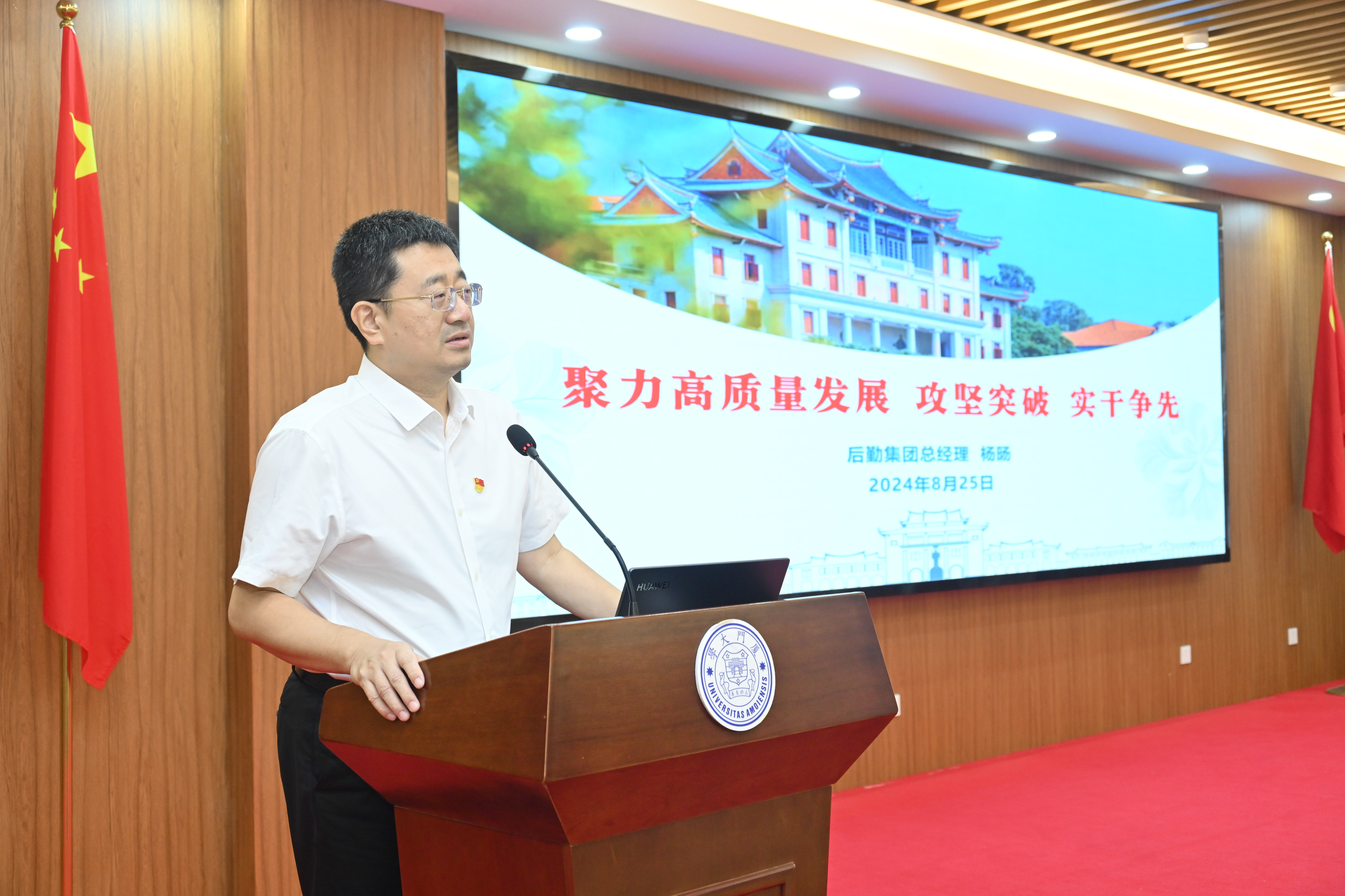集团总经理杨旸通过题为《聚力高质量发展 攻坚突破 实干争先》的总结报告,从管理质量、业务质量、服务质量、人才质量四个维度,系统梳理并逐一展示了集团上半年取得的显著成绩与亮点。杨旸对全体员工的辛勤付出与不懈努力给予高度赞扬。会议还对资产情况、经营情况、预算完成情况的个别问题进行了深入剖析,并就下半年重点工作任务进行了细致分解与部署,他强调要坚持党建引领的主线,夯实安全生产的基础,同时紧扣质量提升“四个抓手”,落实重点工作创新发展,发挥后勤育人功能,进一步提升核心竞争力。