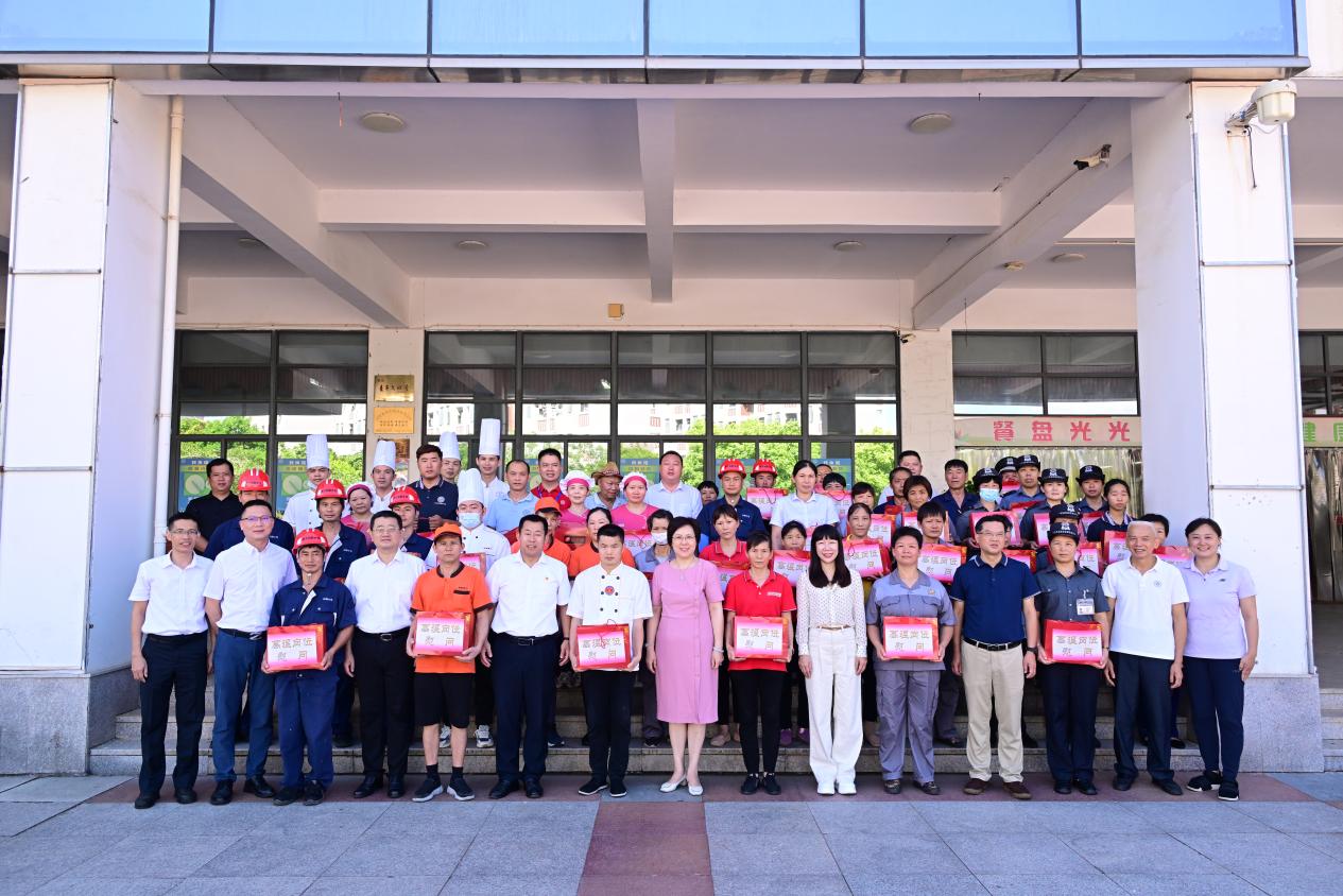 小暑轻启序章时,三伏未至暑已炽。在高温的“烤”验下,一线后勤员工汗透衣襟,不畏酷暑,以满腔热忱坚守岗位,诠释着责任担当。7月9日上午,厦门大学党委常委、副校长、工会主席邓朝晖前往翔安校区慰问高温下坚守岗位的后勤一线员工,厦门大学工会常务副主席洪秋霞,后勤集团党委书记、翔安校区管委会副主任马龙,集团总经理杨旸,校工会副主席余炳建,集团副总经理李启忠,总经理助理、翔安校区服务办主任汪尚谦,集团工会主席、办公室主任吴韶清一同亲切慰问了坚守高温岗位的一线员工,各部门负责人陪同。活动由马龙主持。