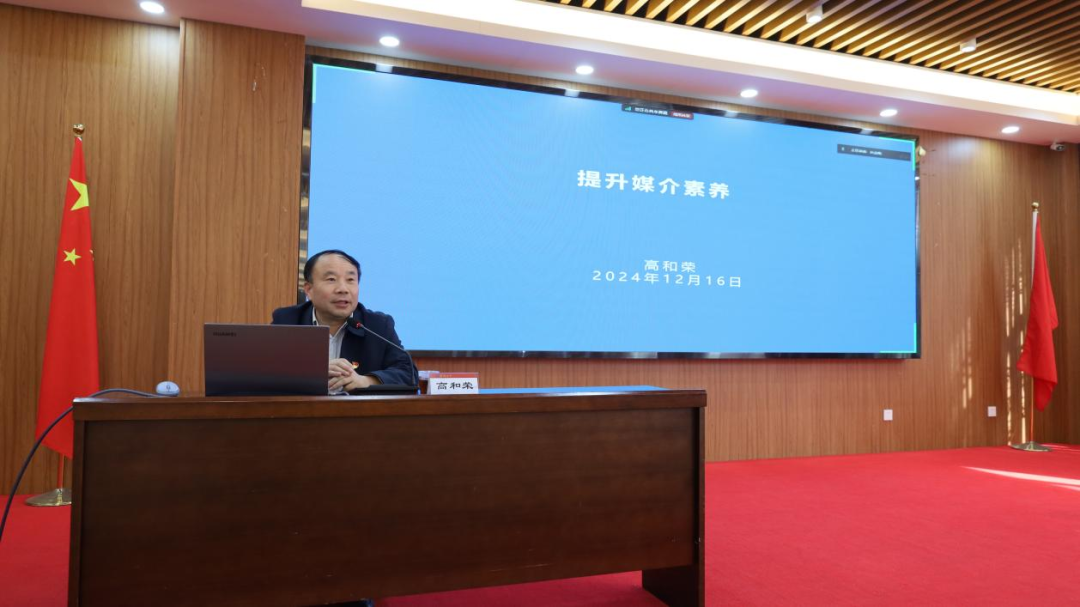 培训现场,高和荣以《提升媒介素养》为题,通过理论讲解、案例分析的形式,用鲜活的事例,结合丰富的实践经验,提出了舆情事件的防范举措和应急处置方法。高和荣指出,在新时代新形势下,高校宣传思想文化工作肩负着展示学校形象、传播校园文化、凝聚师生力量的重要使命,要始终站稳政治立场,把握新闻宣传的正确导向,以高度的责任感、使命感和求真务实的态度做好宣传工作;要持续加强理论武装,不断提升宣传工作者综合素质,发挥宣传思想工作在意识形态领域的重要作用;要规范审核程序,落实落细主体责任,充分认识单位宣传平台发布内容的严肃性,确保各项发布内容准确、规范。