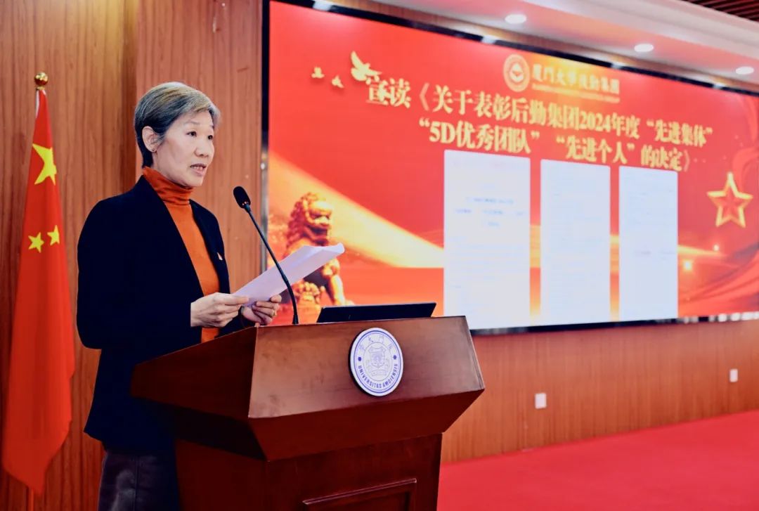会上还对后勤集团2024年度“先进集体”“5D优秀团队”“先进个人”进行表彰,集团党委副书记邓泽君宣读表彰决定,校领导、校基层党建工作联络员、集团领导为获奖单位和人员颁奖,饮食服务中心郑赛莉代表先进集体、厦门南强后勤服务有限公司黄进春代表5D优秀团队、水电服务中心陈毓繁代表先进个人依次发言。大会还为后勤集团爱心资金进行了捐款。