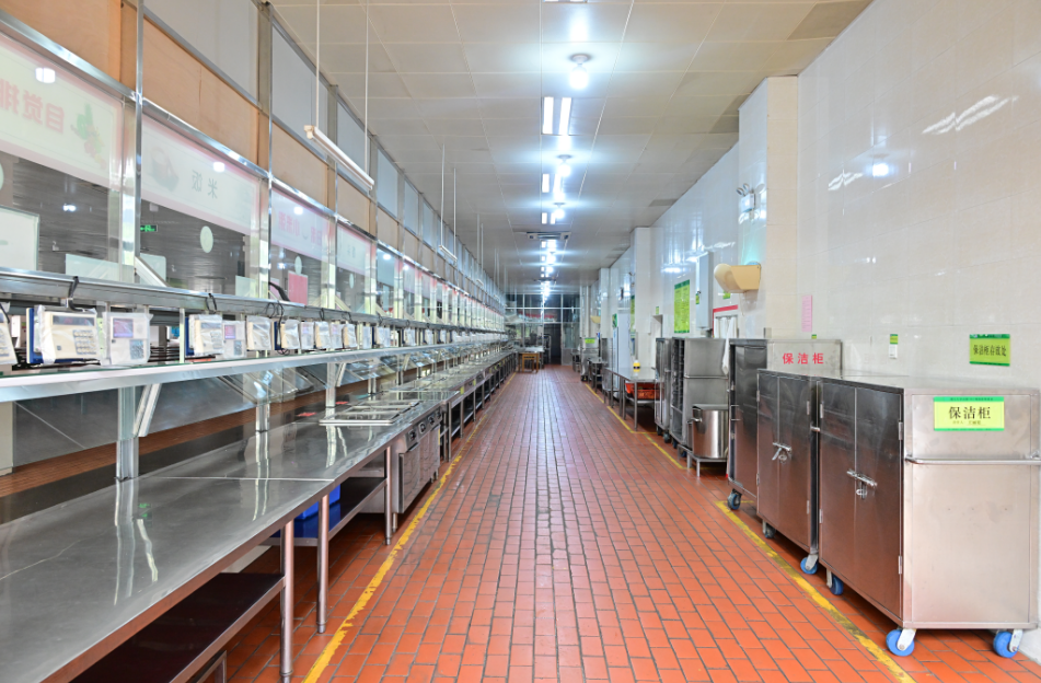3D:清洁到位,对厨房设施设备、餐用具进行清洗、保洁工作,使灶台、货架等设备表面无污垢,炊用具洁净光亮,让卫生清洁工作责任化、日常化、规范化,做到“处处保清洁”。