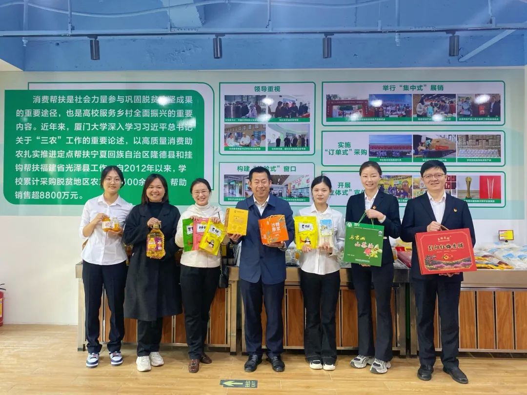 消费帮扶是社会力量参与巩固拓展脱贫攻坚成果的重要途径,也是高校服务乡村全面振兴的重要内容。近年来,厦门大学以高质量消费助农扎实推进定点帮扶宁夏回族自治区隆德县和挂钩帮扶福建省光泽县工作,校领导多次到帮扶点实地考察并作相关工作安排。