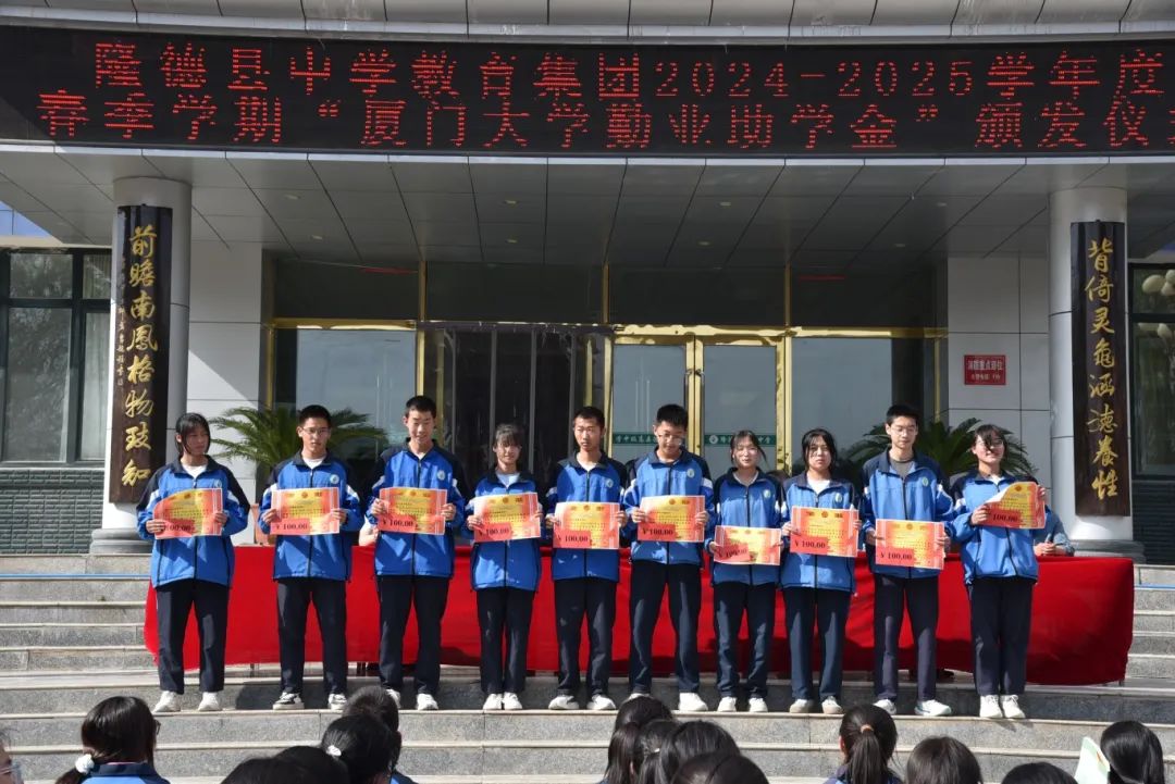 为激励学子勤学苦读、奋发有为,发挥优秀学子的模范带头作用,以实际行动为品学兼优及家庭经济困难学生送去温暖与关怀,践行教育初心使命。5月19日,隆德县中学教育集团全体学子齐聚一堂,共同举行2024-2025学年度春季学期“厦门大学勤业助学金”颁发仪式。活动由学校教务处主任罗志威同志主持。
