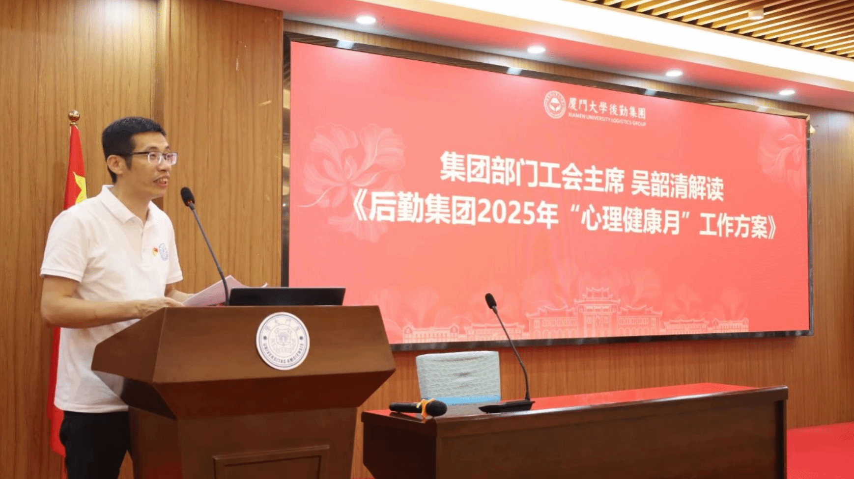 会上,集团部门工会主席吴韶清对《后勤集团2025年“心理健康月”工作方案》进行详细解读。他从活动的背景、目标、具体内容以及预期效果等方面进行了阐述,使参会人员对心理健康月的活动安排有了更清晰的了解。