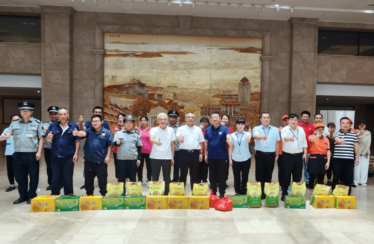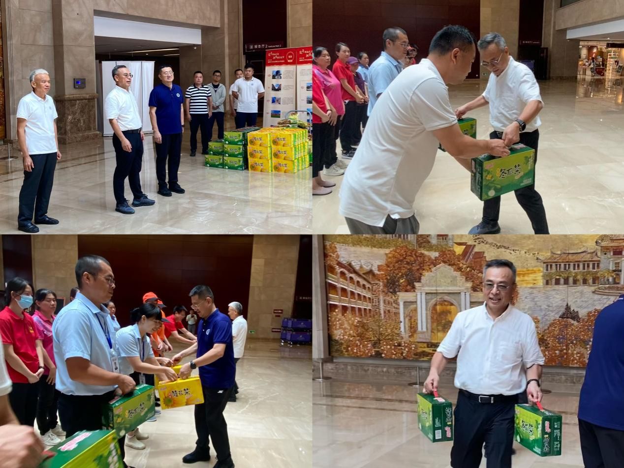 随后,在德旺图书馆北厅开展了“高温慰问送清凉”活动,李智勇、杨旸为坚守岗位的后勤一线员工代表送去了防暑降温用品和亲切的慰问。