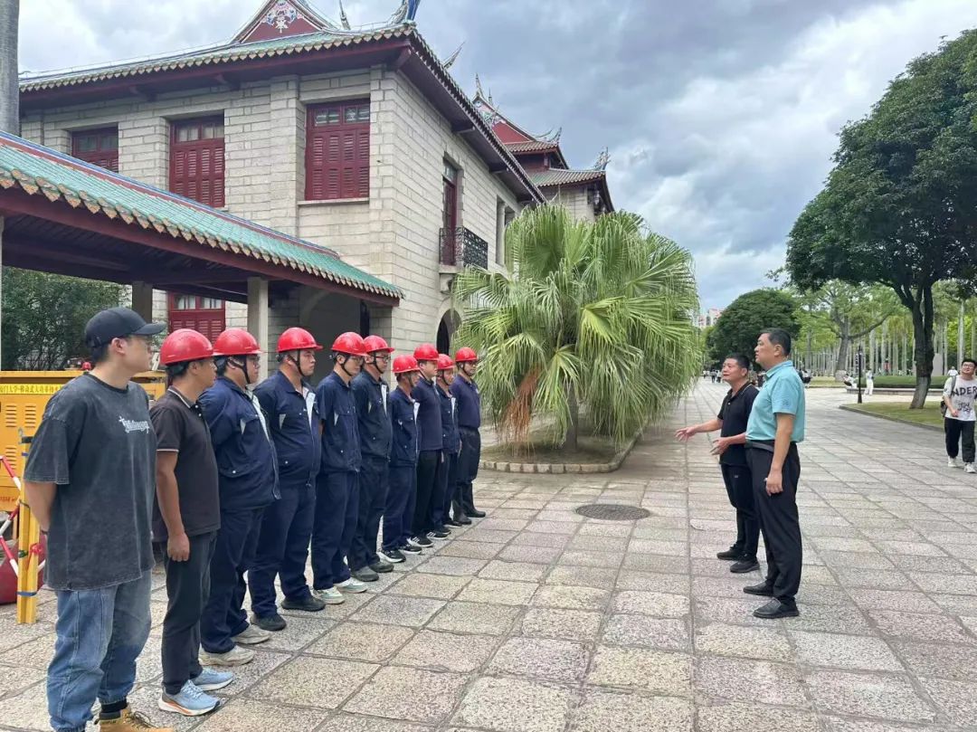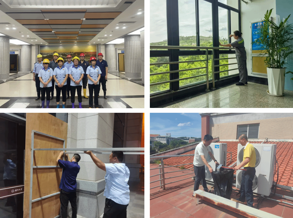 后勤集团围绕台风防御重点,开展校园安全隐患全方位排查。在宿舍园区和教工住宅区域,张贴防台风温馨提示,明确台风应对注意事项与应急联系渠道。增加楼栋巡查次数,逐一检查并整理楼道、阳台堆放物品,避免高空坠物事故。对校园树木进行专项处理,修剪加固存在倒伏风险的树木,及时清除死树枯木;将户外展牌、推水器等物品收纳固定,防止台风中移位损坏。同时,针对暑期维修项目,督促各施工方落实防台风措施,暂停高空、户外危险作业,加固施工材料与临时设施,保障施工区域安全。