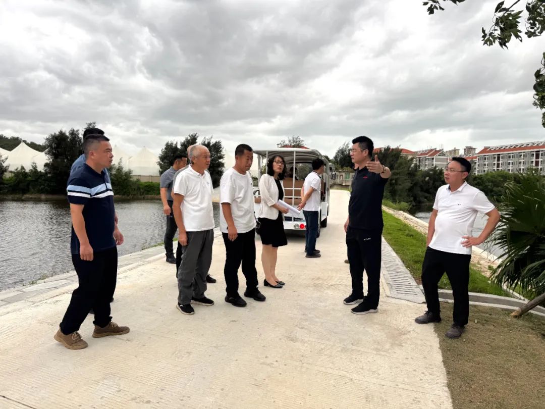 ▲校党委常委、副校长李智勇,集团总经理杨旸对文庆湖、水库进行台风前安全巡检