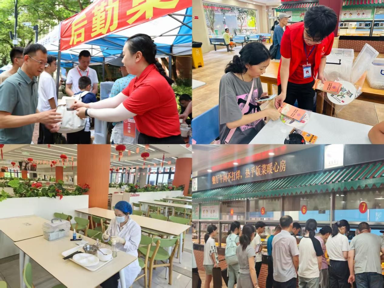 “您好,这杯凉茶可以帮您解暑,小心烫……”在迎新咨询点,后勤员工为路过的新生及其家长递上一杯杯暖心的免费凉茶,并化身“美食向导”,为新生提供指南手册,通过标注各餐厅位置、特色菜品与供餐时间,助力新生快速解锁“校园美食地图”,在餐厅耐心协助新生绑定校园卡、演示支付流程。餐厅延长午间供餐时段,确保新生与家长随时能吃上热腾腾的饭菜。值得一提的是,与往年不同,今年多家餐厅赠送冰咖啡与文化扇,让新生在清爽口感与实用纪念中,感受厦园独有的仪式感。