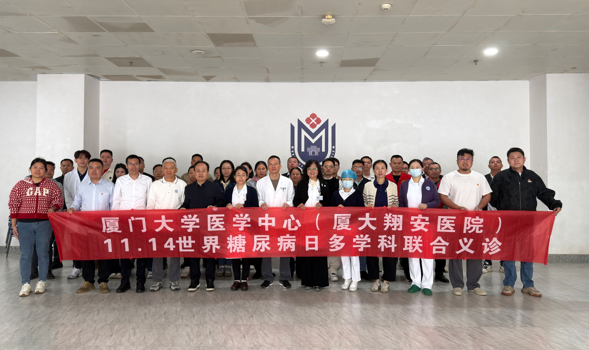 为提升全体职工对糖尿病的防治意识,倡导健康生活方式,11月19日,由厦门大学后勤集团部门工会、厦门大学附属翔安医院主办,翔安校区服务办党支部承办的“世界糖尿病日”义诊活动在翔安校区爱秋体育馆举行。集团副总经理杨建中到场指导。