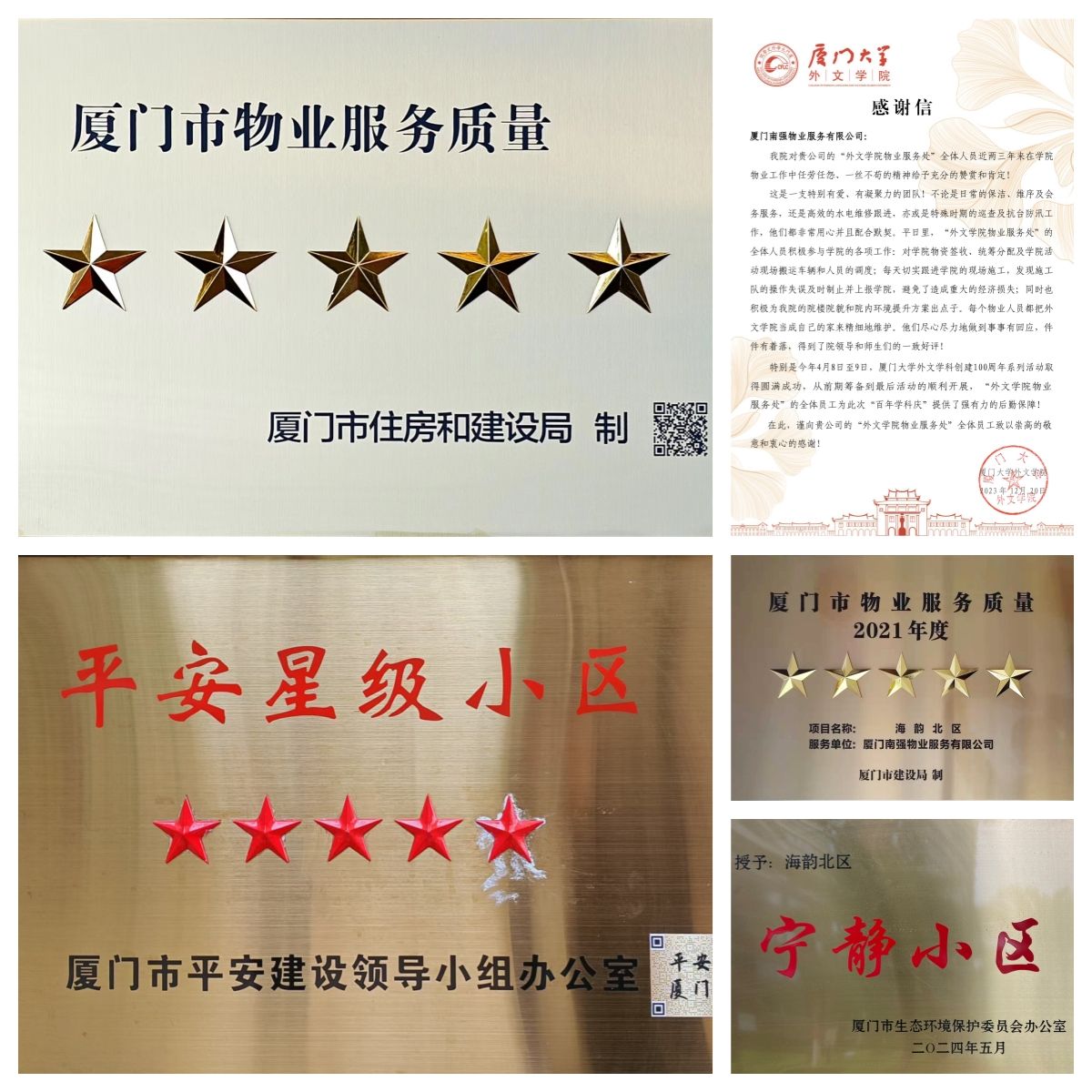 五年奋进,累计获得国家级、省市级荣誉39项,获评福建省物业服务企业信用评价AAA级、厦门市劳动保障信用A级;并拿下7项等级资质,助力增值业务发展;年处理包裹量超280万件;人才队伍不断壮大,累计取得各类专业证书共计479本……