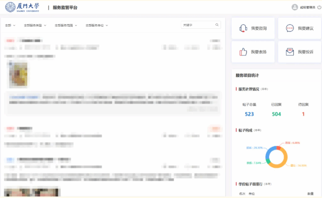 集团办公室拓展“智慧后勤”新生态,提升节能降耗实效,升级“线上监督报修平台”,实现报修、跟踪、评价全流程移动化。五年来,累计分别完成63733项报修事务,1736项来帖咨询、反馈与投诉事务转办、跟进、落实,打造“从线下至线上”与“从线上至线下”闭环管理模式,杜绝服务过程中的“跑冒滴漏”,成为师生信赖的百事通。