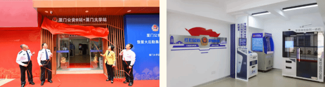 厦门公安e站·厦门大学站暨后勤服务大厅便民服务专区于2024年正式揭牌启用,标志着厦门大学成为全国首家于校园内非公安系统直属单位常驻提供警务便民服务的高校。