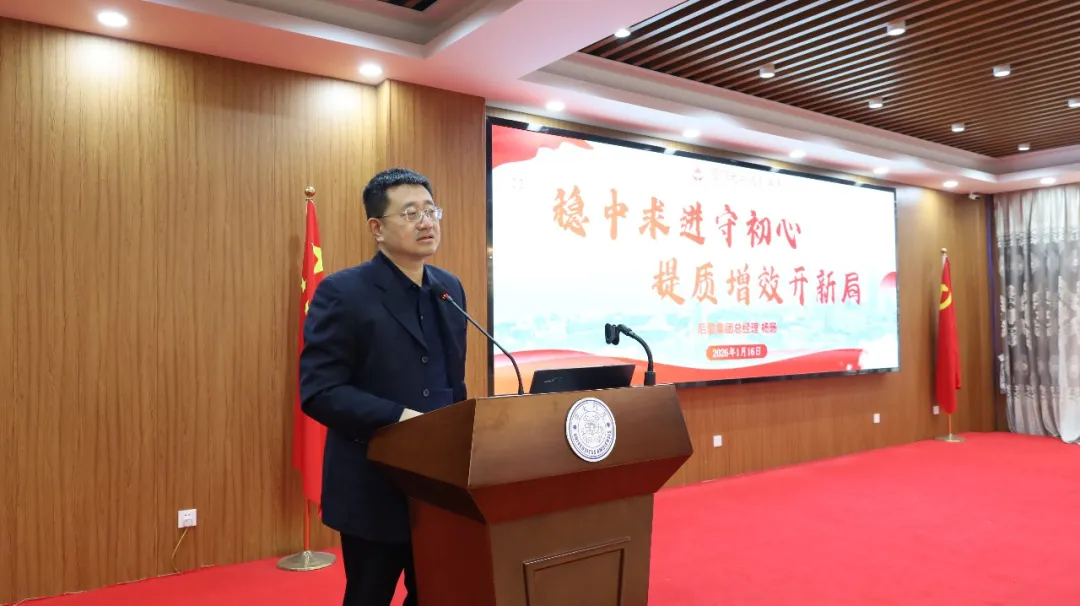 集团总经理杨旸以《稳中求进守初心 提质增效开新局》为题向大会作年度总结报告,全面回顾了过去一年集团的工作亮点与成效,并提出新一年的工作思路。他表示,2025年集团紧扣立德树人根本任务和“质量提升”主线,团结协作、实干笃行,做优做实思想引领、服务保障、内控管理、安全生产、队伍建设、民生关怀、品牌文化及育人功能发挥等多方面工作,完成了一份温润人心、亮点纷呈的后勤答卷。他指出,迈入“十五五”开局之年,“稳中求进、提质增效”是应对复杂局面的必然选择和根本遵循,各单位要紧扣高质量发展要求和集团“十五五”规划,保持一张蓝图绘到底的战略定力,发扬钉钉子精神,以深化改革创新为根本动力,全力构建支撑长远发展的十大核心体系,稳步推进集团“四个质量”提升目标取得新成效。