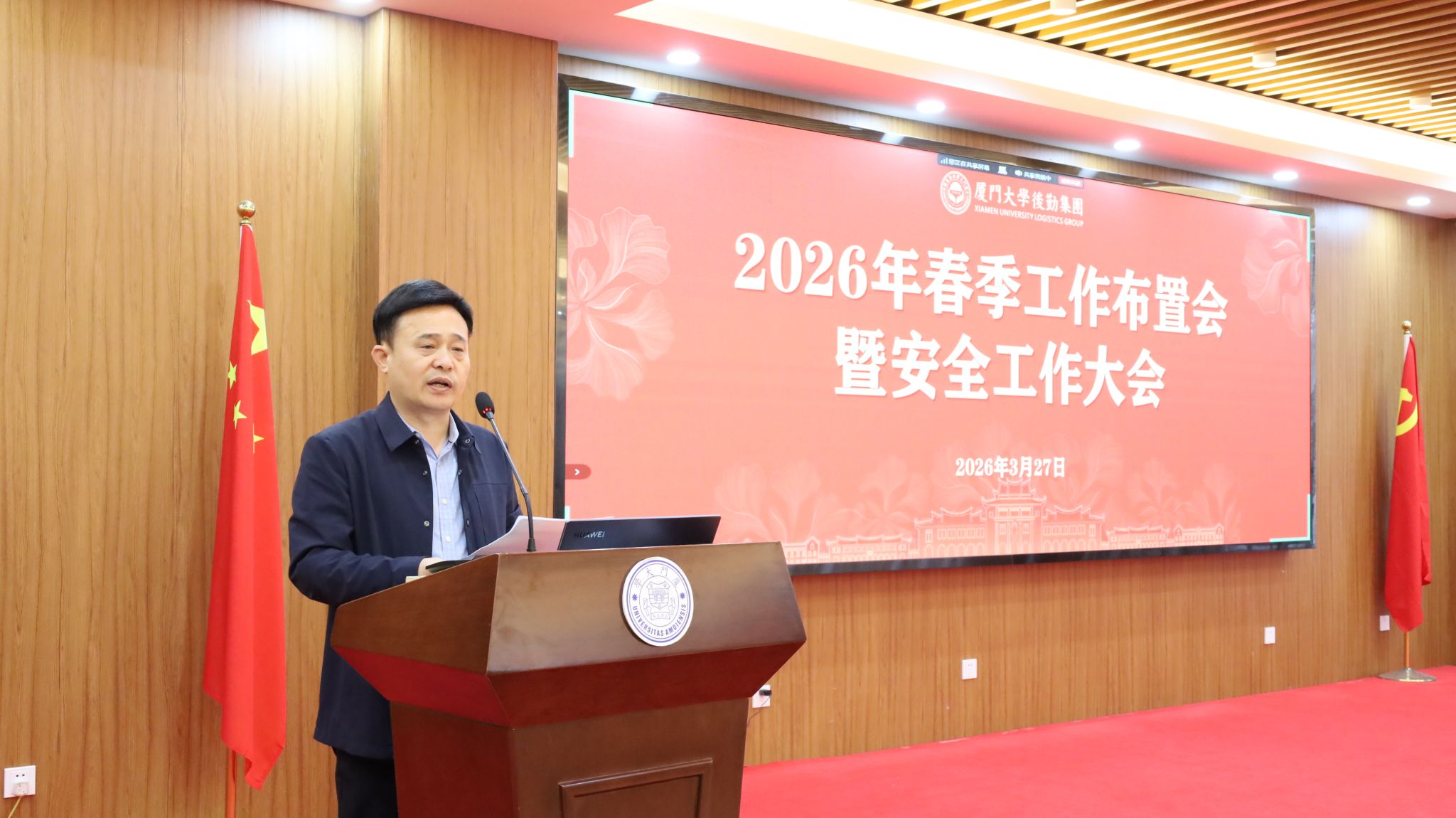 3月27日,集团召开2026年度春季工作布置会暨安全工作大会,会议以线上、线下结合的方式同步在三校区开展。集团领导班子成员、二级岗及以上管理人员、党支部书记、工青妇负责人、安全工作相关人员参加会议。会议由集团党委副书记、副总经理杨建中主持。