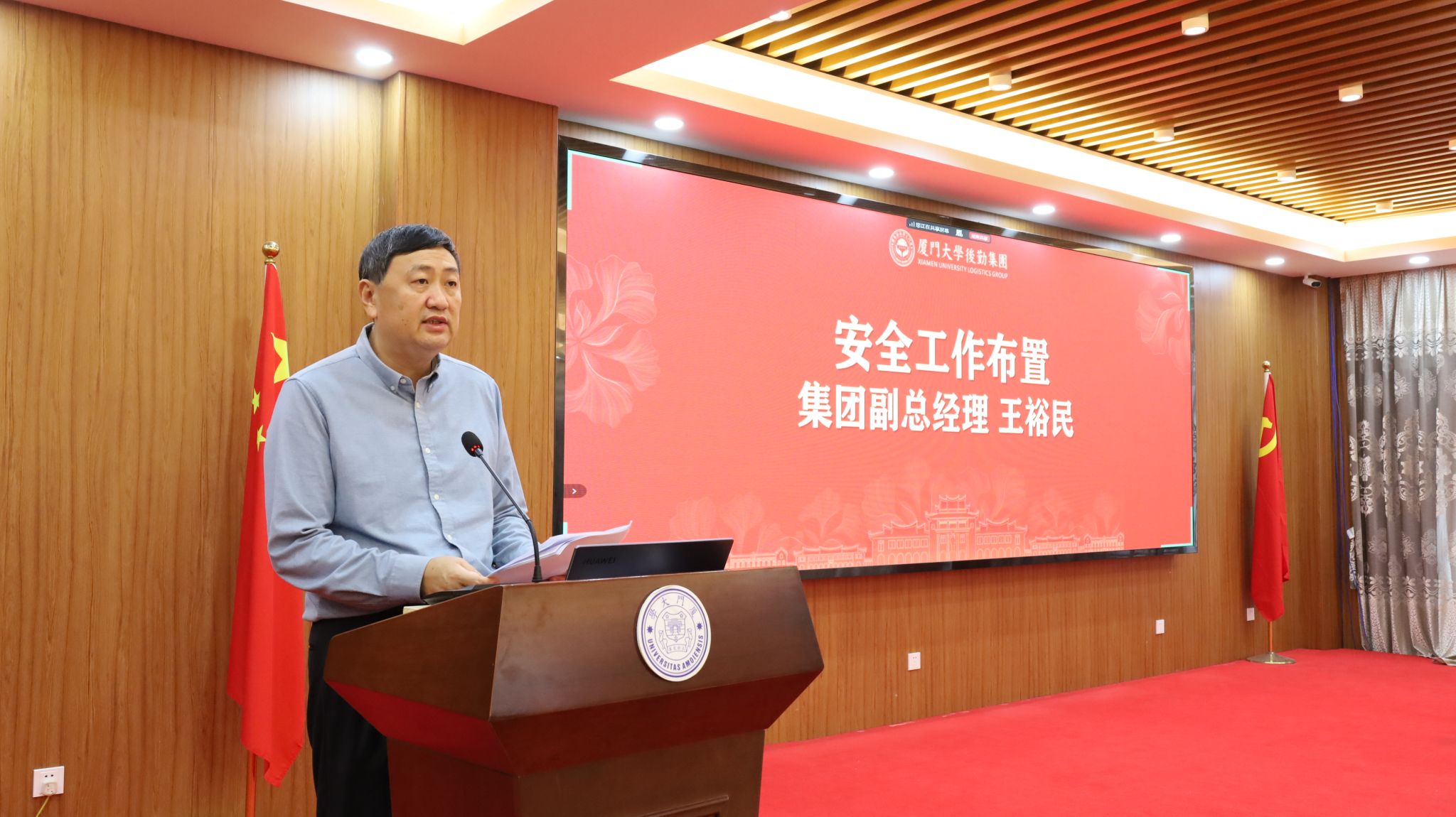 集团副总经理王裕民作安全工作布置。他回顾了2025年集团在安全责任落实、隐患排查整治、应急能力提升等方面取得的成效,并结合近期高校发生的交通安全、火情事件、盗窃案件、信息安全风险及廉政警示等典型案例,深入剖析当前安全工作中存在的薄弱环节。他强调,要进一步提高政治站位,以“时时放心不下”的责任感守牢安全底线;抓实意识形态安全,强化总体国家安全观,筑牢信息安全屏障;深化重点领域排查整治,持续完善应急预案与联动机制,推动隐患动态清零,全力构建平安和谐的校园环境。