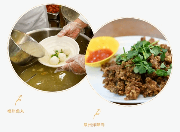 11月27日至11月30日,来自厦门大学、福州大学、华侨大学、闽南师范大学、三明学院、龙岩学院、莆田学院、宁德师范学院、武夷学院的厨师分别进驻厦大思明校区芙蓉餐厅二楼的9个美食档口,精心烹饪福州鱼丸、泥鳅粉干、武夷熏鹅等35种福建特色菜品。