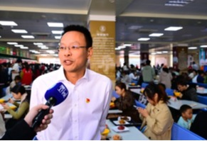 △厦门卫视采访厦门大学后勤集团副总经理 沈雄晖(右)