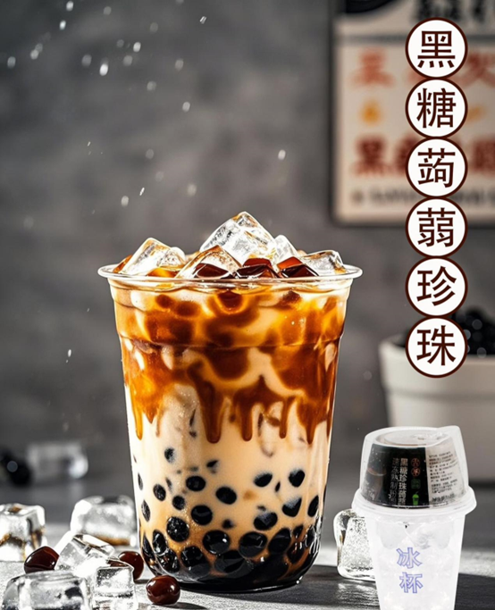 传统台式风味,Q弹的蒟蒻珍珠、与浓郁的古早黑糖结合。