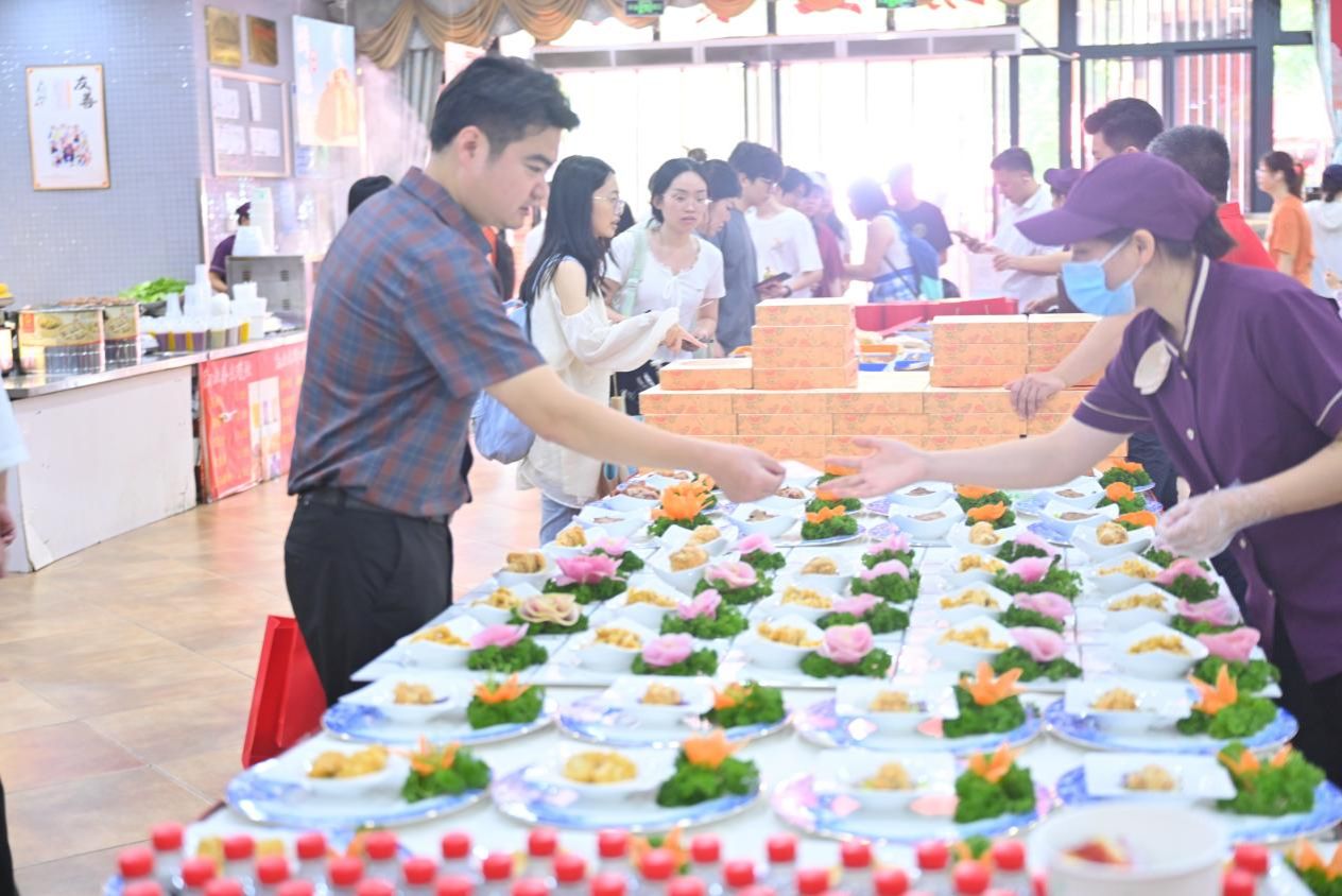 “请拿好您的月饼,祝您双节快乐!”食堂里,身着志愿服的同学及后勤志愿者穿梭其间,将包装精美的月饼递到师生手中,一句句温馨的祝福,让节日的暖意直抵人心。午餐时段,各食堂窗口前秩序井然,刚从博饼区赢得美食兑换券的师生,转眼便将券换成盘中的美味。大家或三五成群围坐餐桌,捧着月饼、品着佳肴,共话校园趣事与时事热点;或举起手机,定格下与同学、与月饼、与食堂节日装扮的合影,让这份厦园里的团圆味,留在镜头里,刻在记忆中。