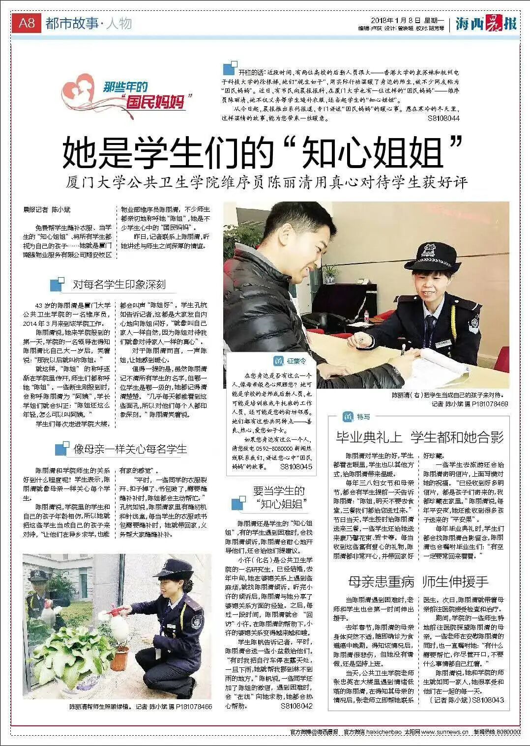 陈丽清的岗位在学院大厅,负责秩序维护和日常巡查。