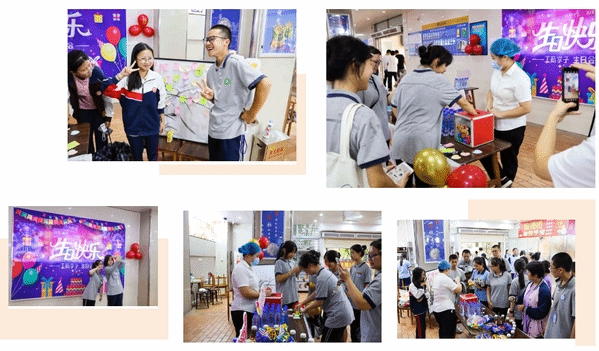 就今年六月而言,餐厅就迎来了很多“幸运小寿星”。拿到礼物的同学们又惊喜、又感动,他们意想不到在学校过生日还能收到餐厅的暖心礼物,为此而感动。同学们还把自己的心愿贴满心愿墙,香甜的蛋糕配上灿烂的笑容,现场处处洋溢着青春的校园气息,这项活动当之无愧成为同学们最受欢迎的活动。