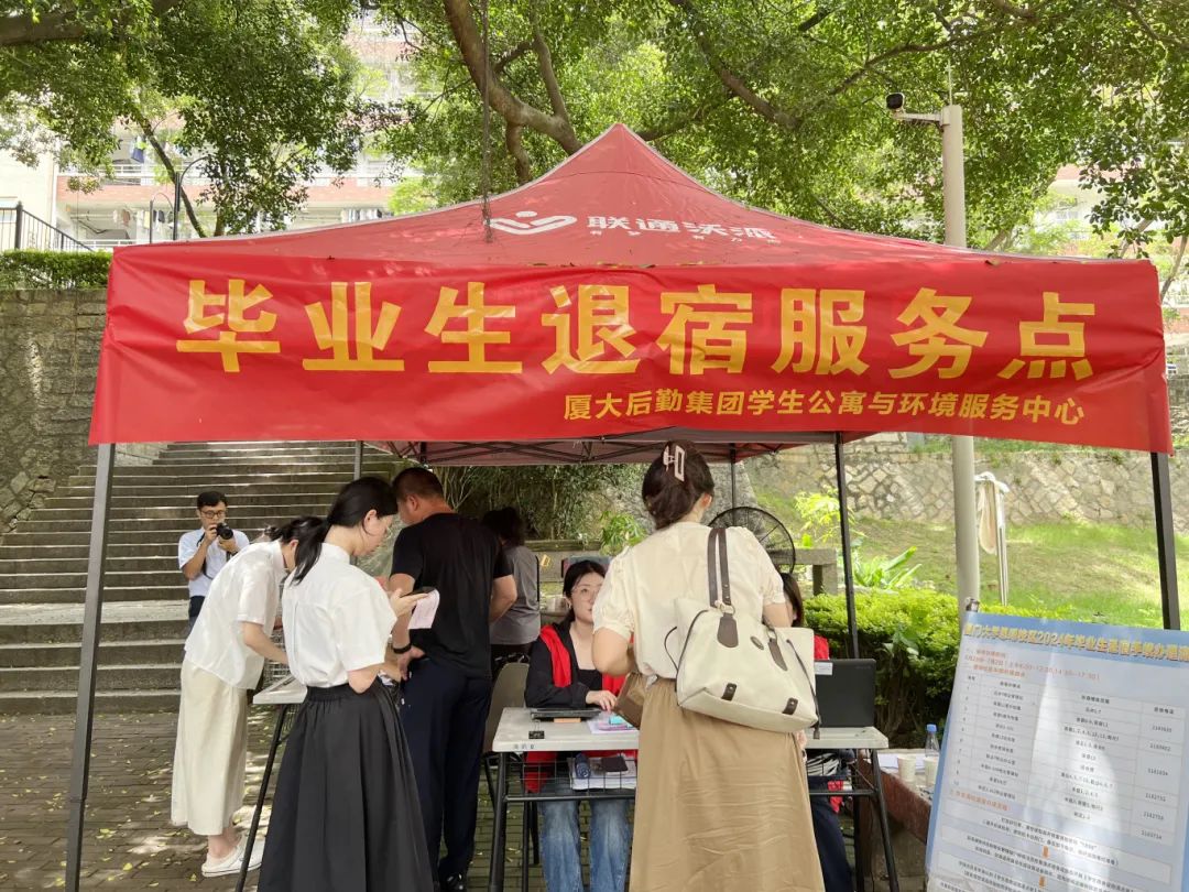 盛夏的序曲与毕业的旋律交织在一起,给厦园抹上了浓浓的离别色彩。为保障毕业生安全有序离校,学生公寓与环境服务中心精心准备、主动作为,全力做好毕业季服务保障工作,用实际行动为毕业生送上最暖心的“毕业礼物”。