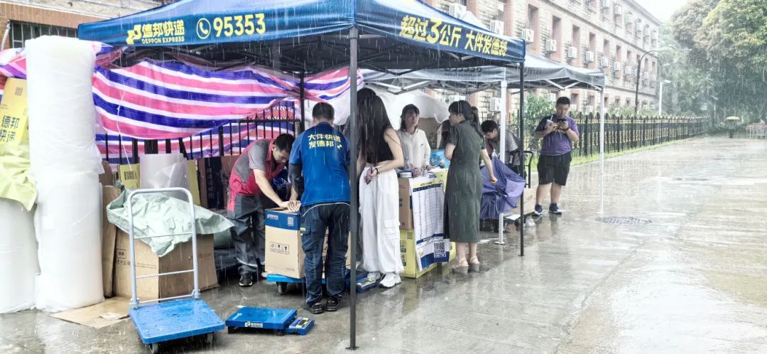 为确保今年毕业季行李托运工作顺利进行,邮政服务部提前与邮政、顺丰、德邦、京东等快递公司联系,汇总服务项目并发布通知,使毕业生详细了解行李托运价格,对比选择快递公司。快递公司还在各园区门口设点,方便毕业生办理行李托运,减轻毕业生离校负担。