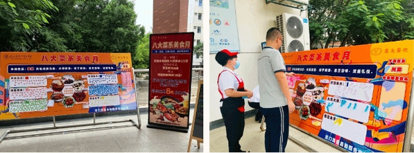 餐厅积极发挥服务育人、环境育人、劳动育人的职能,将餐厅打造成双十中学所需要的劳动教育阵地。通过氛围营造,积极宣传习近平总书记“节约粮食、杜绝浪费”重要工作指示,并通过饮食文化、社会主义价值观、营养健康等广告宣教,引领绿色节约的餐饮新风尚;在传统节日,如元宵节、端午节、中秋节、冬至等期间,通过与师生互动、教授美食技巧的同时,让学生既感受到中华饮食文化的魅力,也亲自体验到劳动收获的乐趣,让传统节日体现时代性、富有仪式感、充满生活味;尤其在中高考等重大供餐保障服务期间,落实公司创设多主题赋能减压活动,激发学生迎考斗志,让学生与教职工在参与餐饮文化活动中抒发内心情感,坚定文化自信,产生文化共鸣,激励师生员工决胜中高考,保持只争朝夕、不负韶华的奋进姿态。